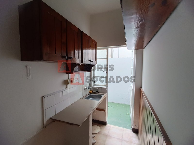 Living comedor, cocina definida, baño completo y patio.